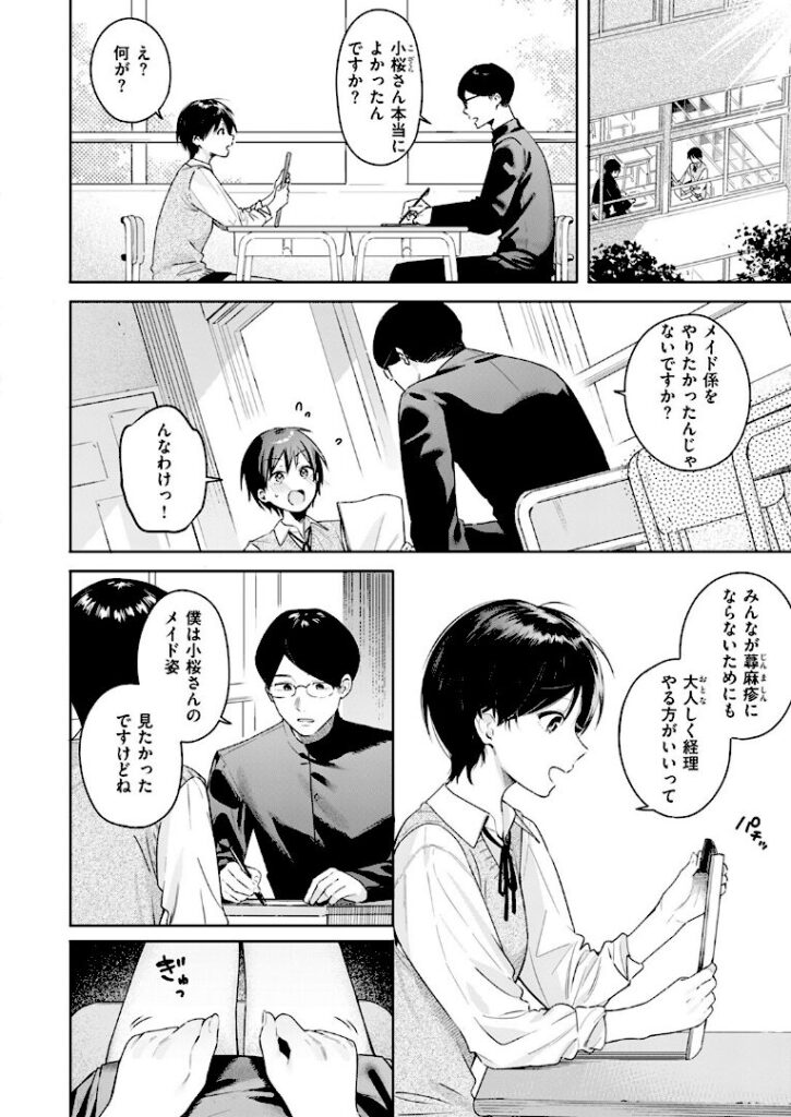 結局、メイド服は着ないで進一と同じ、裏方の経理係を選んだ真央。